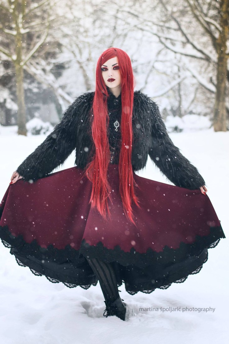 Obsidian Kerttu wearing the Lucine Skirt I designed for Spin Doctor Clothing