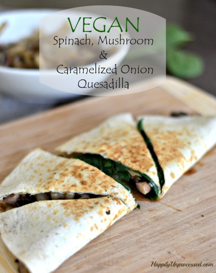 Vegan Spinach, Mushroom & Caramelized Onion Quesadillas