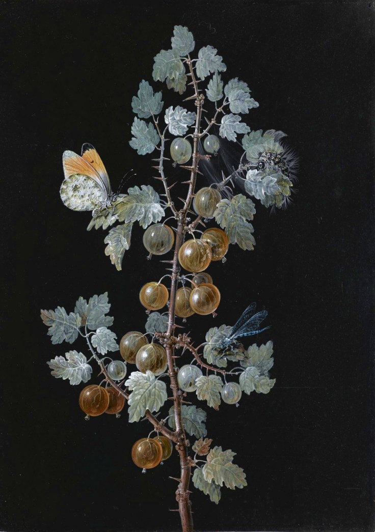 Barbara Regina Dietzsch – A gooseberry branch, with a dragonfly, butterfly, and caterpillar – 18th c. – via Sotheby’s