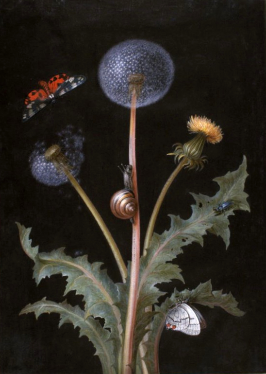 Barbara Regina Dietzsch – A Dandelion with a Tiger Moth, a Butterfly, a Snail, and a Beetle – 18th c. – via FAMSF