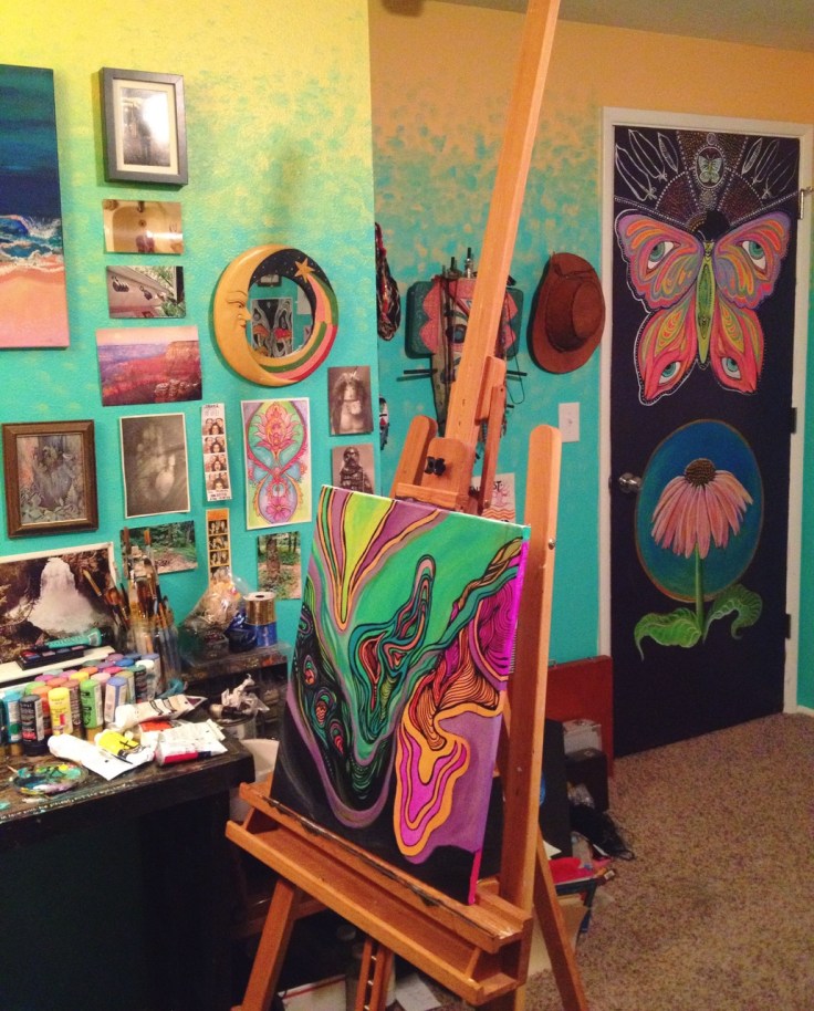 My second hOMe in Eugene, Oregon. Hand painted all the walls, the door and canvas on my easel 🙂