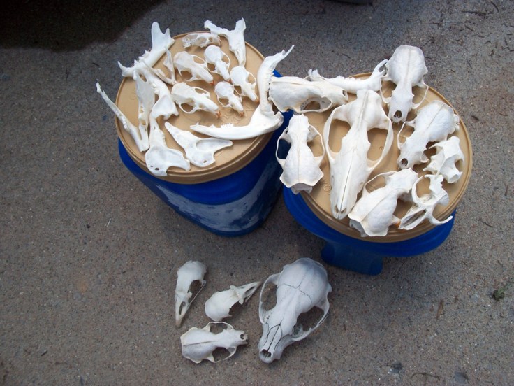 Few skulls out of the peroxide to dry. Rats, mink, chickens and more!