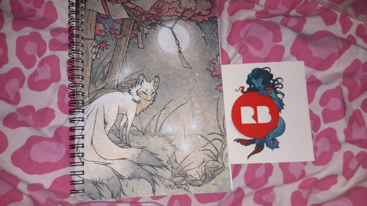 So I ordered this book from redbubble! The art is by @teafoxillustrations the art on the free sticker is by someone called Fioski who is on redbubble.Â