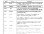 We should now proceed with an examination of the four components of a natal chart, and these are the twelve houses, the twelve signs, the 10 planets, and the basic four aspects, although a few of the lesser aspects will be examined. We shall consider the ten planets as they are defined in astrology. The Planets have distinct psychological characteristics and personalities, as one would expect, since they were once gods. The following table will illustrate this point.