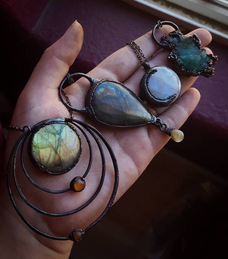 Here’s a preview of some items going into the shop tonight! I made a second planetary piece that everyone loved so much, and another moon pendant as well. There are quite a few new designs too.. this update is a little preview of what is coming for the Autumn season 💛