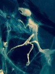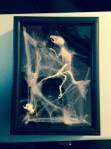 Attempt at a shadowbox. Real rat skeleton, fake cobwebs, and the spider was made with rat teeth and clay. I may replace it with a real one someday if I can find one